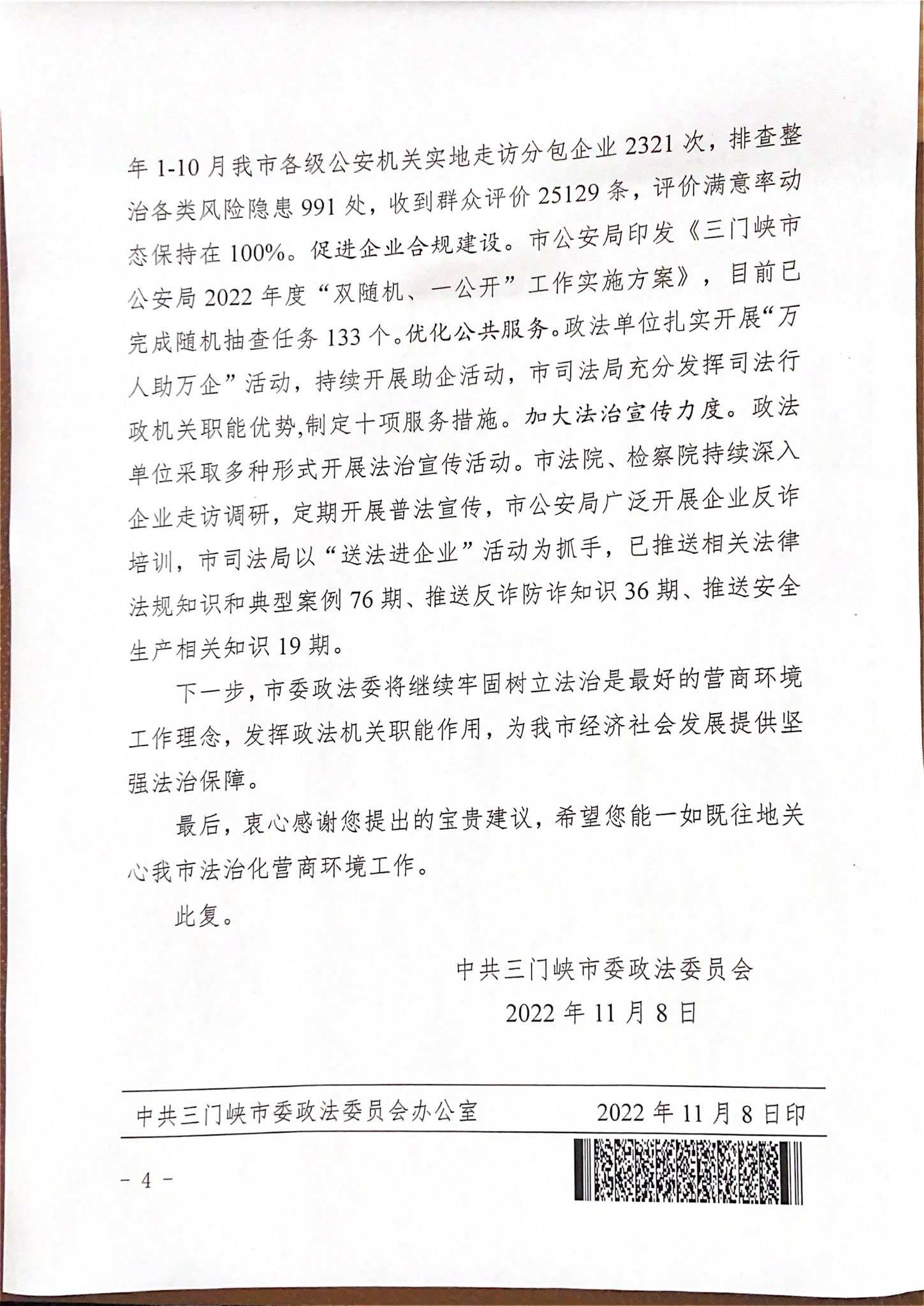 (二)司法效能需进一步提升。办理破产收回债务时间需进一步缩短(2020年三门峡市收回债务时间为2.05年,比省内优秀实践城市开封市的0.38年长1.67年);办理破产债务回收率有待进一步提高(2020年三门峡市破产清算案件债务回收率26.45%,与省内优秀实践城市开封市38.45%相差12个百分点);多元化纠纷解决机制不健全;合同执行质效有待进一步提升;知识产权全面保护力度有待加强;企业权益保护方面,企业安全感不高、社会治安综合治理能力有待加强。